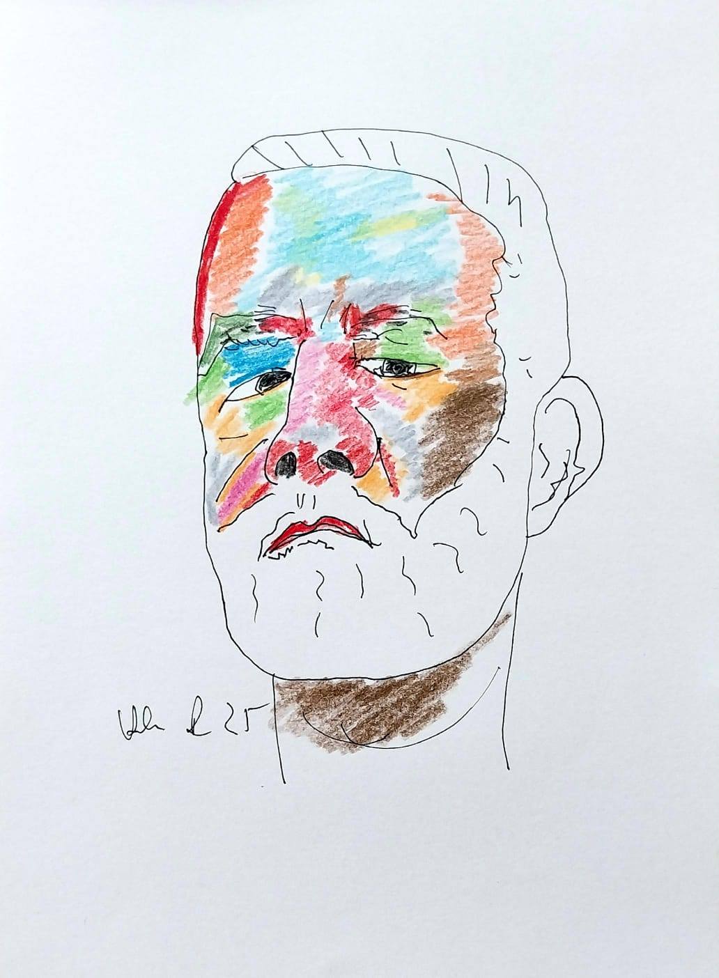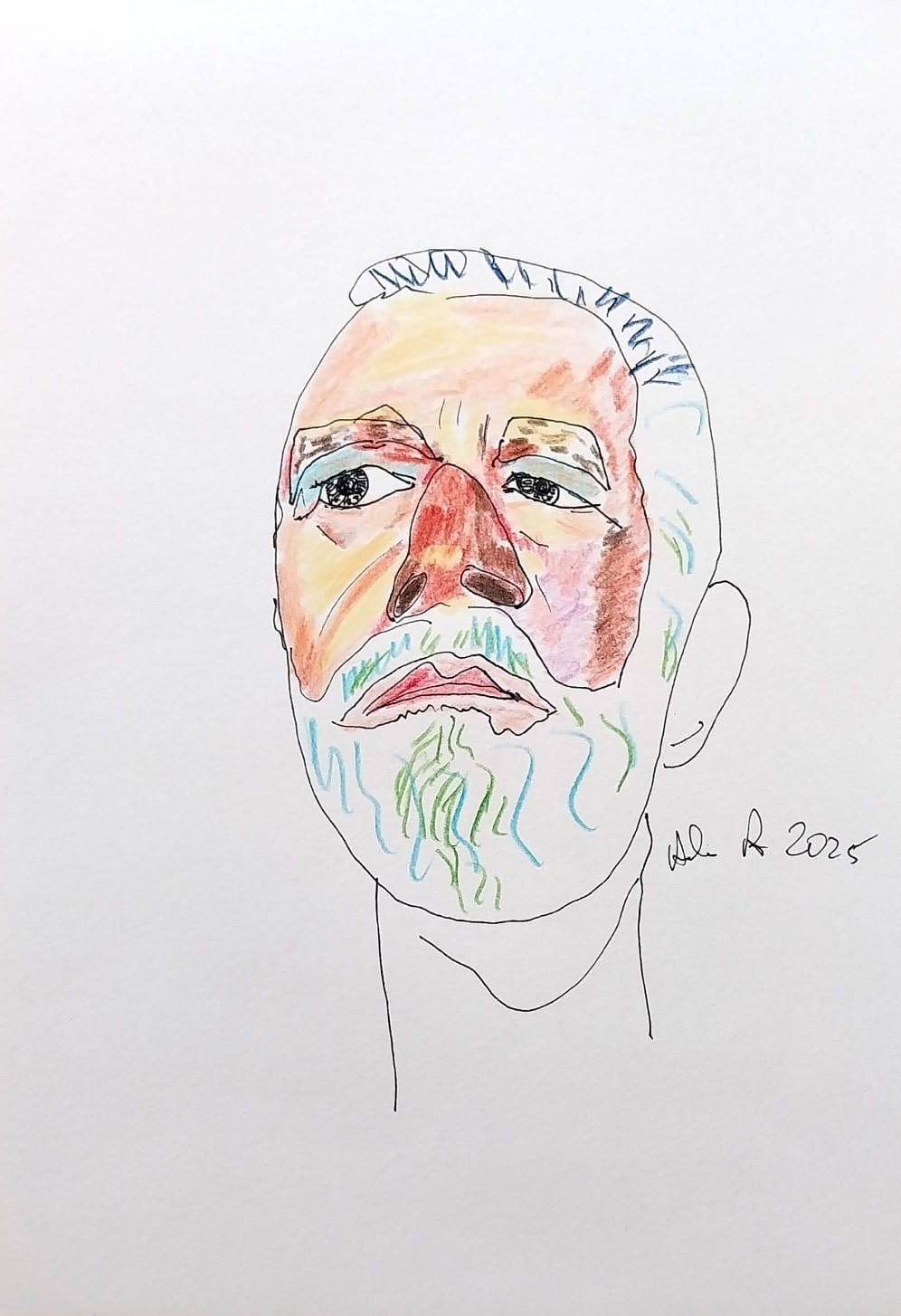 Wystawa „Kolor-Biały-Czarny” liczy 30 prac wykonanych na papierze A4. Wszystkie powstały w 2025 r. Są to portrety, czyli ten rodzaj sztuki, którą zajmuję się od 40 lat.
