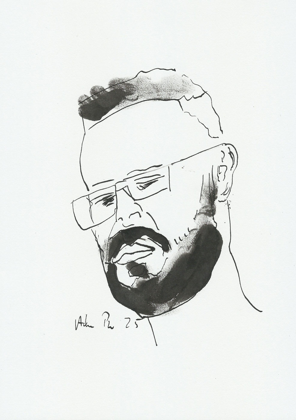 Czarny – bo poprzez czarne plamy tuszem kładzionym palcem na wcześniej wykonanych rysunkach chciałem uzyskać efekt ekspresjonistycznego ale i uproszczonego portretu moich znajomych, przyjaciół, portrety żyją i wciągają